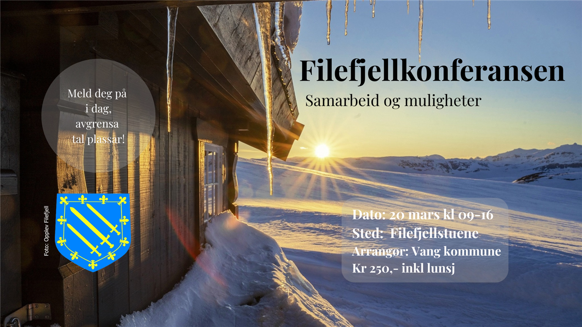 Vi har gleda av å invitere deg til Filefjellkonferansen 2026 - ein møteplass der aktørar og representantar frå reiseliv, næringsliv, kommunar, fritidsinnbyggjarar og frivillige organisasjonar samlast for å fremje utviklinga av Tyin-Filefjell-området til ein av dei fremste vinter- og sommardestasjonane i landet.