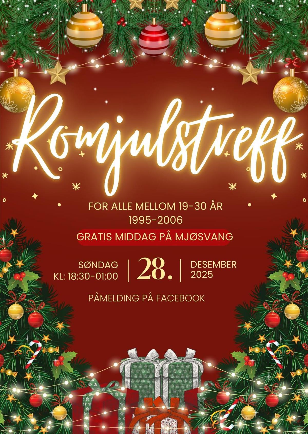 Er du mellom 19 og 30 år og heime i romjula? Då må du bli med på ein kjekk kveld med gratis middag, god stemning og sjansen til å møte nye og gamle vener!