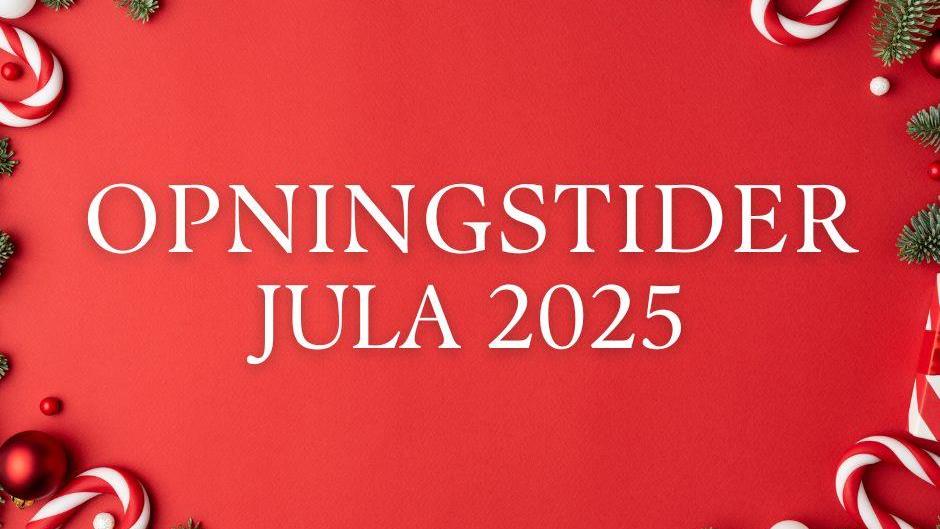 Opningstider jula 2025 I jula blir det litt kortare opningstid enn vanleg.Her finn du oversikt over når du kan nå oss, og telefonnummer til dei ulike vakttenestene. Publisert 19.12.2025 kl. 13.44